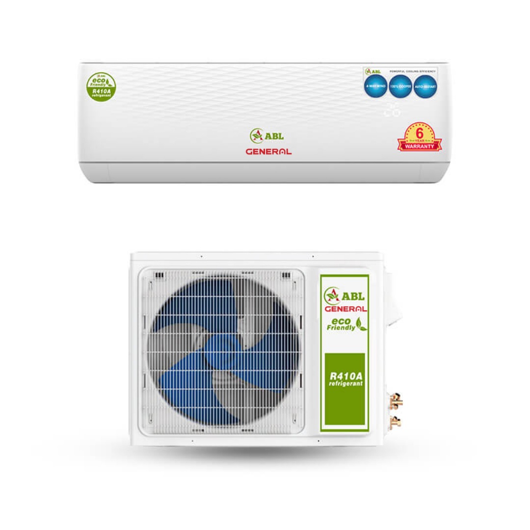 ABL-GNERAL Split Type 1 ton AC features 12000 Btu, coverage: Up to 130 square feet, automatic digital control, Low power consumption. Made In Malaysia.